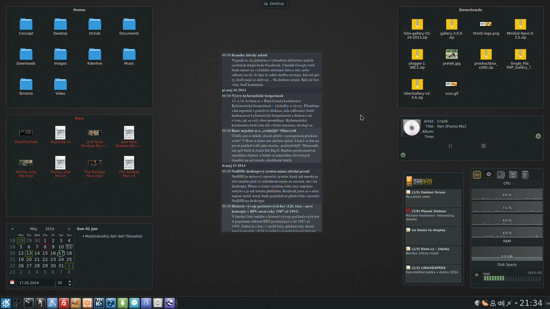 RSS NOW funguje taky, ale je tam ještě jeden widget, který se jmenuje přímo Latest news a ten mi v debianu nefunguje..v kubuntu s tím samým kanálem ale jo..přijde mi lepší příspěvky jsou tam pěkně pod sebou a nerotujou dokola jako v RSS NOW